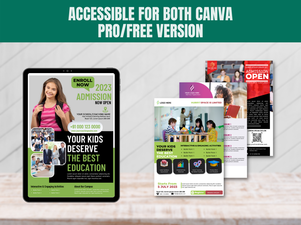5 Education Flyers Template | Fully Customisable Canva Templates | Admission Flyer